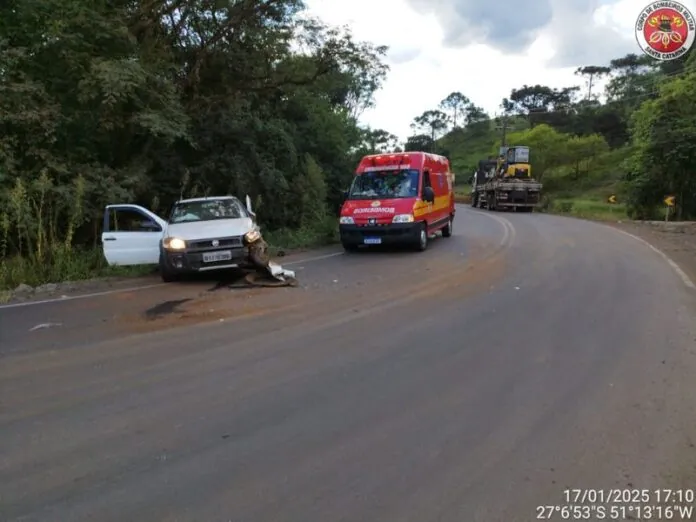 Na tarde de sexta-feira, 17 de janeiro de 2025, por volta das 16h54, um acidente de trânsito foi registrado na Rua Ernani Pedro Johann, em Tangará. O Corpo de Bombeiros foi acionado para atender a uma colisão envolvendo dois veículos: um caminhão Ford Cargo 2429L e um Fiat Strada, conduzido por um idoso de 75 anos.