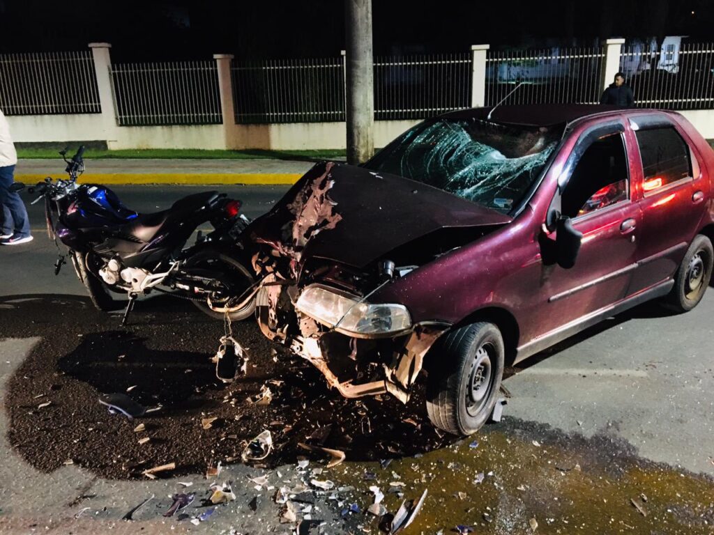 O trem de socorro deslocou para atender um acidente de trânsito na Rua João Zardo no bairro Vila Verde em Videira, próximo a EPAGRI, no local constatou-se uma colisão frontal entre um veículo de passeio e uma motocicleta.