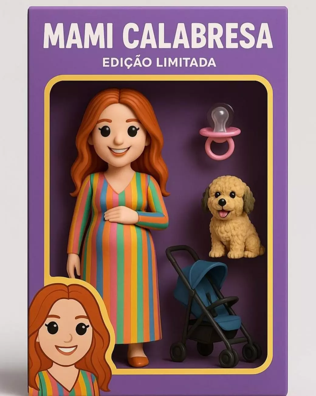 Crie uma figura de ação no estilo cartoon baseado na foto anexada. Ele (a) está usando [roupa ou traje estilizado] e tem [detalhes estilizados: cabelo, olhos, expressão etc.]. A embalagem tem fundo [cor ou padrão divertido] com elementos gráficos ilustrados no estilo cartoon. Os acessórios são caricatos: [lista de acessórios estilizados]. O nome ‘[Nome da personagem]’ aparece na embalagem em letras grandes, com estilo [estilo da fonte], acompanhado da frase ‘[Slogan ou título da coleção]’.