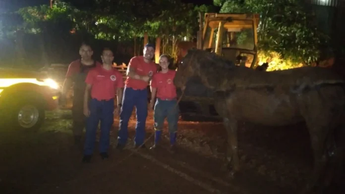 Após a retirada da égua, os bombeiros constataram que o animal sofreu apenas uma laceração superficial na região do supercílio.
