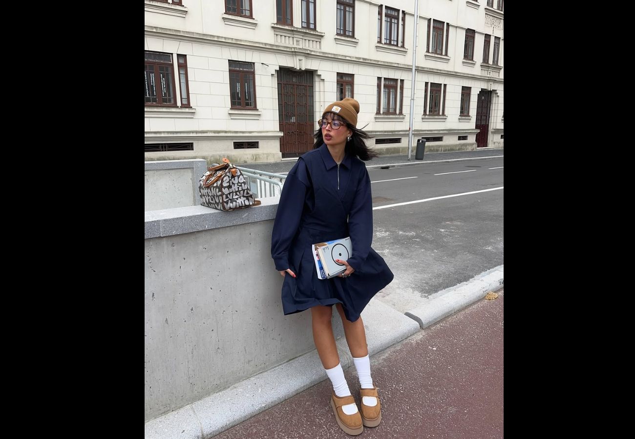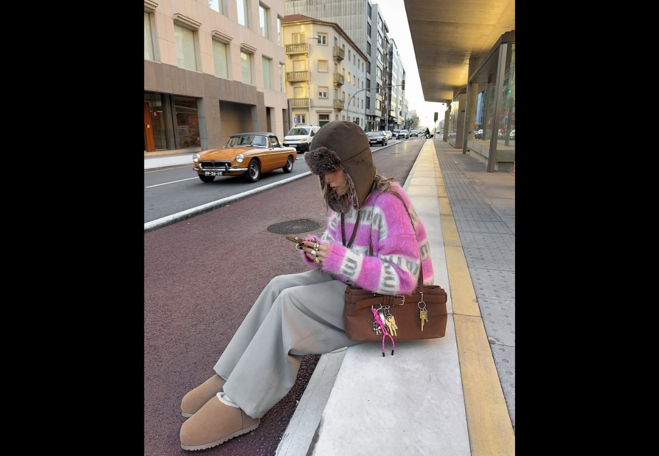 A bota pantufa já foi símbolo de conforto caseiro, mas agora invade os looks do street style – Foto: Reprodução/Instagram/ND