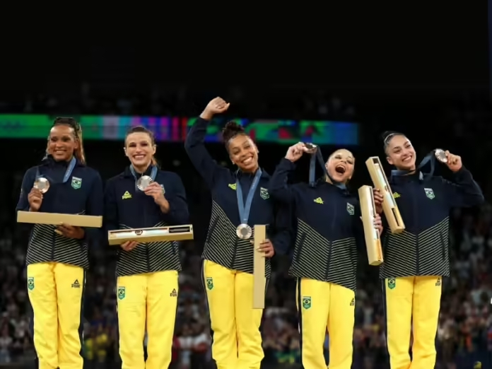 Na ginástica artística, o Brasil fez história em Paris 2024. Pela primeira vez, o país conquistou uma medalha na disputa por equipes. O time feminino, composto por Rebeca Andrade, Flávia Saraiva, Jade Barbosa, Júlia Soares e Lorrane Oliveira, ficou com o bronze. O ouro ficou para a equipe dos Estados Unidos, capitaneada por Simone Biles, e a prata para a Itália.