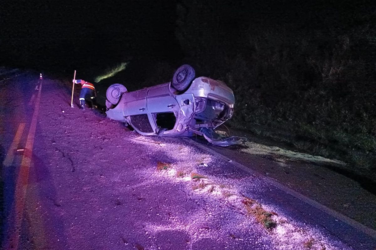 Carro capota na SC-350, causa uma morte e deixa dois feridos