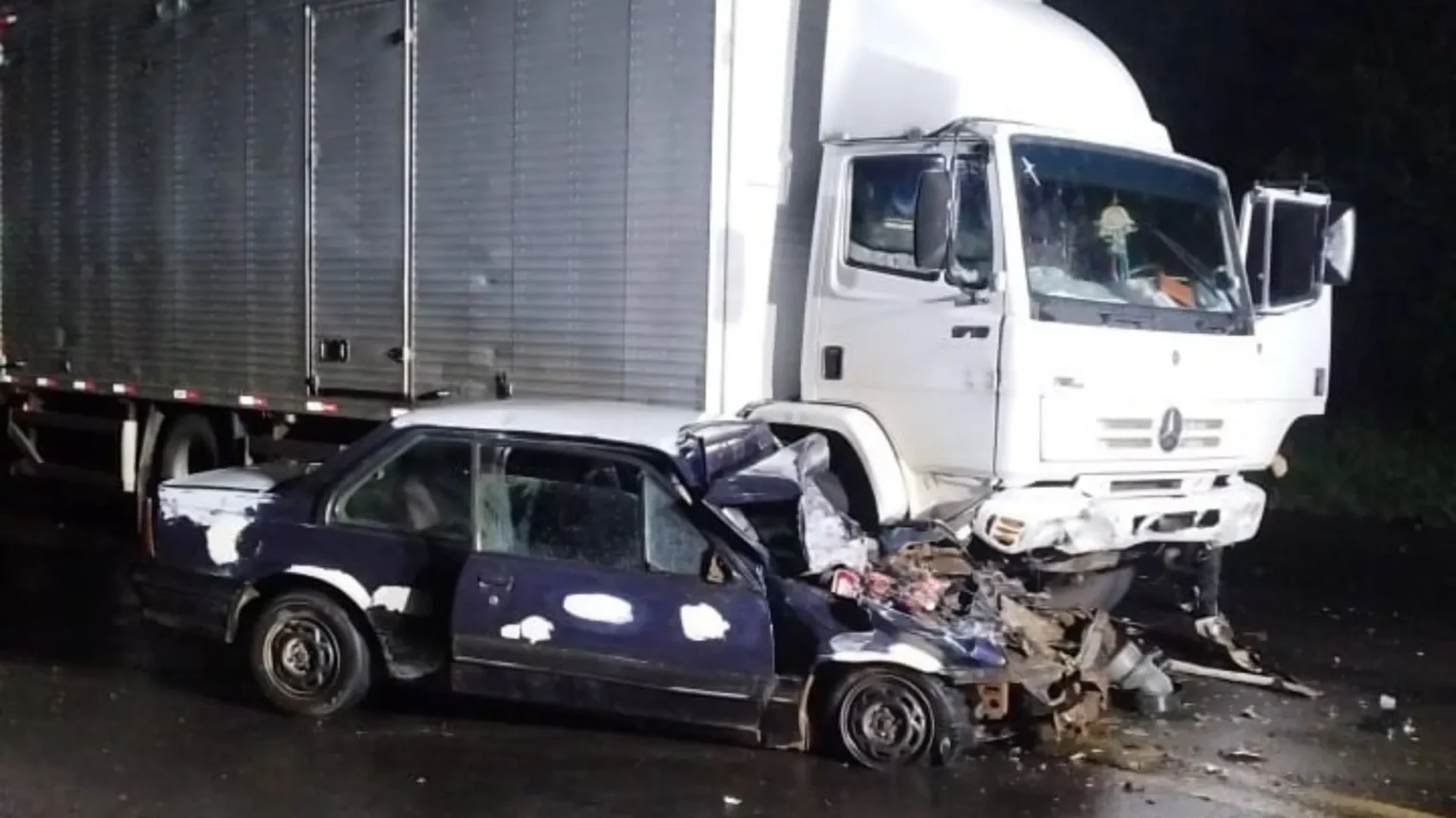 O outro veículo envolvido no acidente era um caminhão furgão baú trucado Mercedes Benz Electronic 1718, com placas de Fraiburgo.