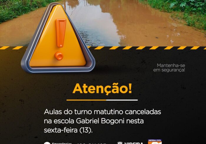Aulas da escola Gabriel Bogoni suspensas em decorrência do alagamento da Rua Anita Garibaldi