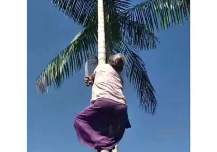 Terror do INSS, idosa de mais de 80 anos escala palmeira e ‘assunta’ a internet