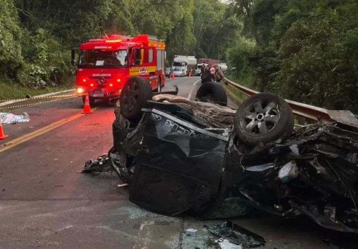 Mulher morre e jovem fica ferido após capotamento na SC-150
