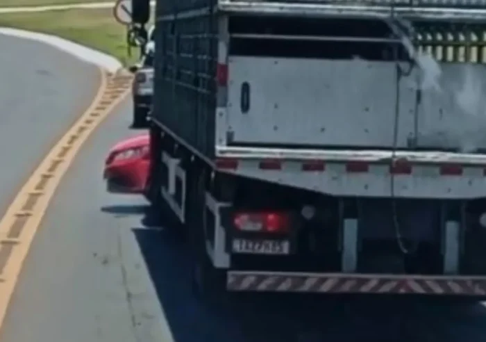 Caminhoneiro não vê carro e o arrasta por vários metros na BR-282