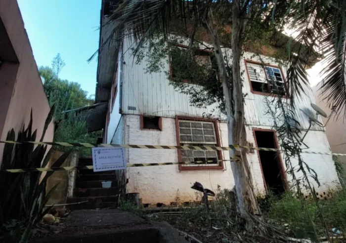 Casa de madeira pega fogo no Centro de Videira