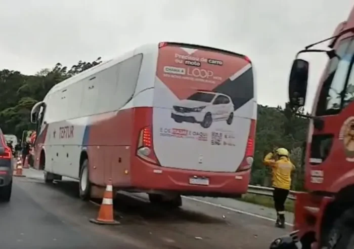 Ônibus de turismo se envolve em acidente com carreta na BR-470