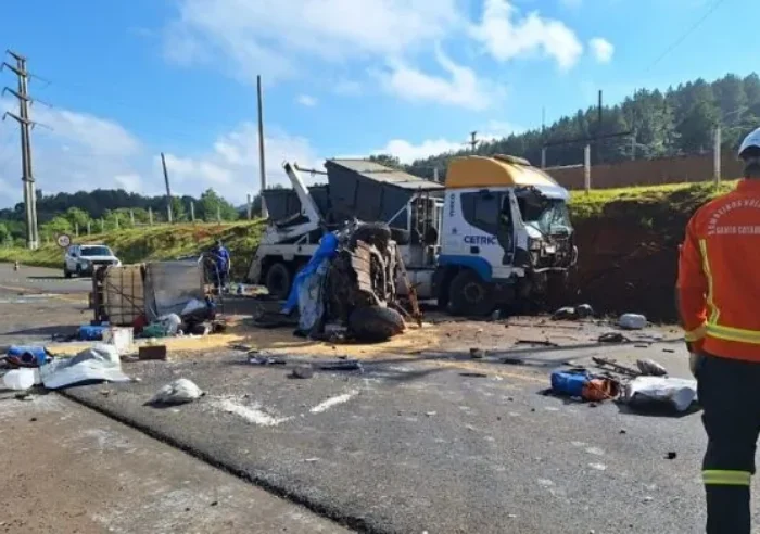 Grave acidente na SC-350 deixa motorista preso às ferragens