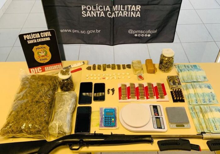 Operação em SC prende três suspeitos e apreende armas, drogas, dinheiro e animais de rinha