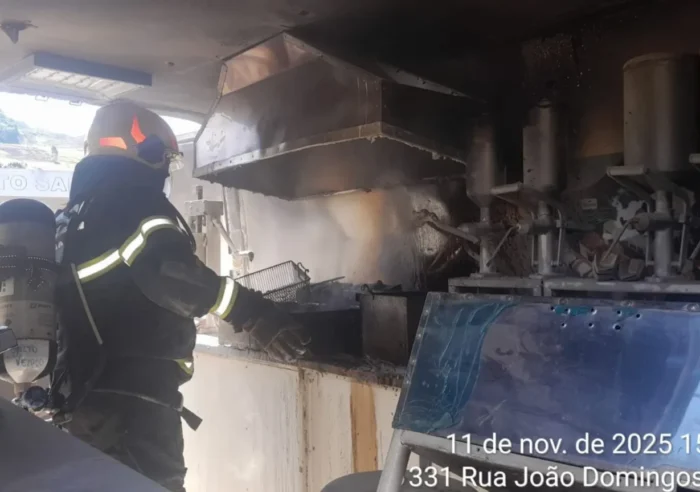 Trailer de churros pega fogo no pátio de posto em Salto Veloso