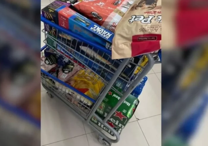 Homem enche carrinho e tenta sair sem pagar em mercado de SC