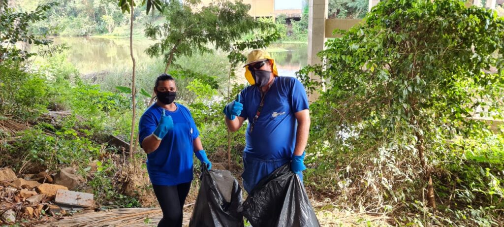 Trabalhamos com carinho para deixar a cidade limpa. Faça a sua parte, lugar de lixo é na lixeira e não no rio.