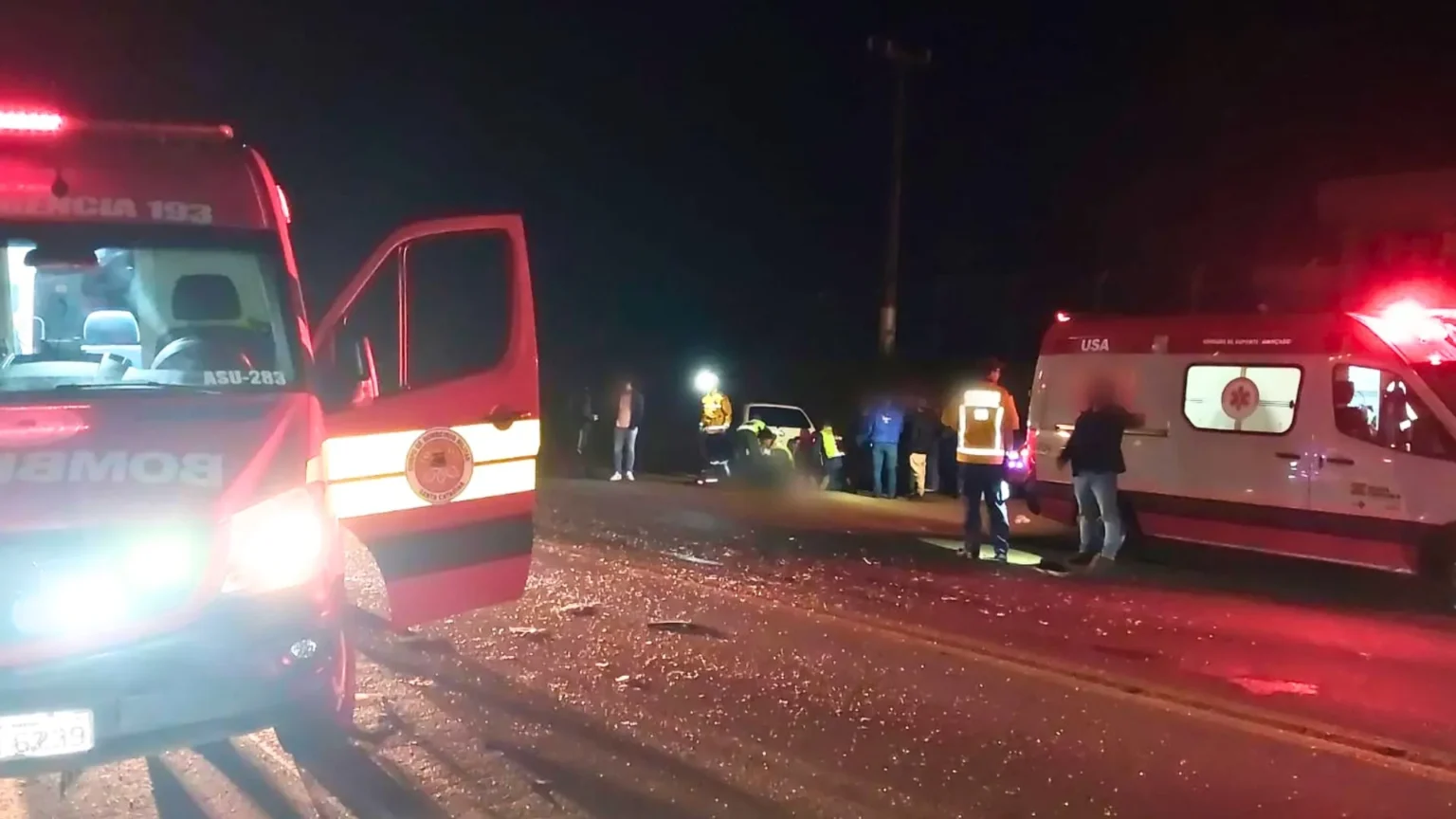 Acidente de trânsito em Videira envolve quatro veículos e deixa três homens feridos; um deles teve suspeita de traumatismo craniano.
