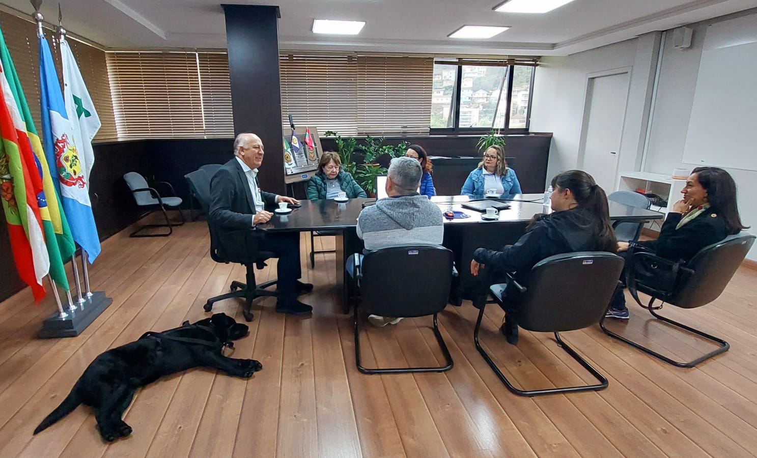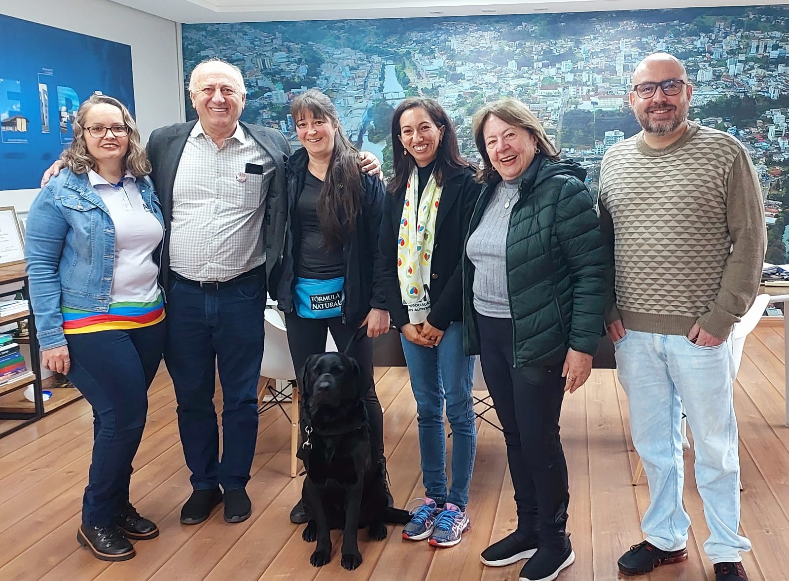 Essa quinta-feira (10) foi especial por aqui. O labrador Guru, cão de assistência da Associação dos Amigos dos Autistas de Videira veio até a Prefeitura com membros da entidade.