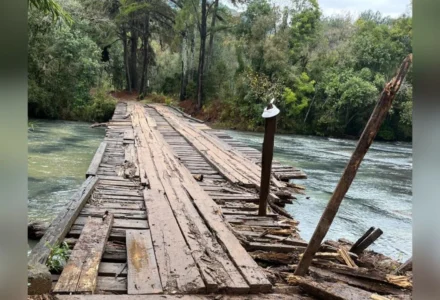 Ponte quebra na divisa entre Caçador e Macieira