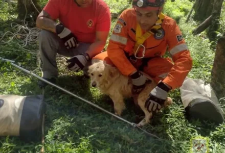 Cãozinho é resgatado após cair em poço em Caçador