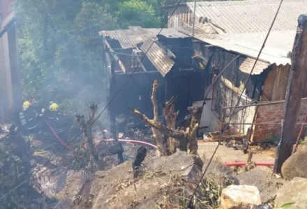 Incêndio em Videira atinge três casas, uma totalmente destruída