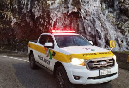 Frio forma gelo na pista da Serra do Rio do Rastro e PMRv faz alerta: ‘especial atenção’