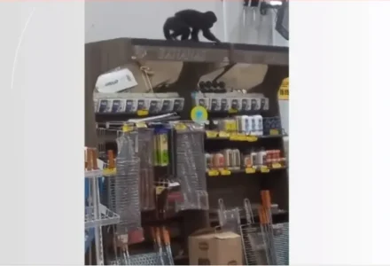 Macaco entra em supermercado duas vezes, bebe cerveja, come pinhão e é apreendido