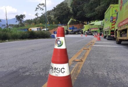 Trânsito na Serra Dona Francisca segue sem previsão de liberação total após acidente com ácido