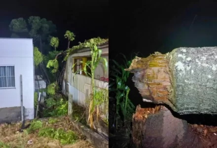 Tempestade causa queda de árvores em Videira