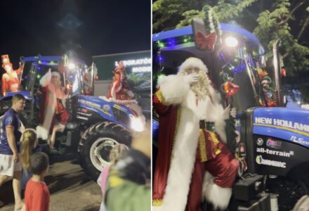 VÍDEO: ‘Papai Noel do Agro’ faz entrada inesperada e surpreende cidade de SC