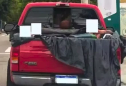 Picape com piscina improvisada na caçamba é parada pela PMRv