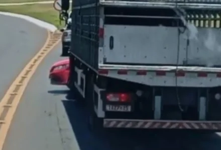 Caminhoneiro não vê carro e o arrasta por vários metros na BR-282