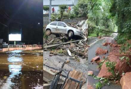 Ano-Novo começa com rio transbordado e ruas interditadas pela chuva em SC