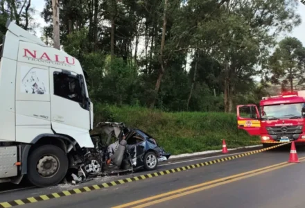 Jovem morre após colisão entre carro e caminhão em Fraiburgo