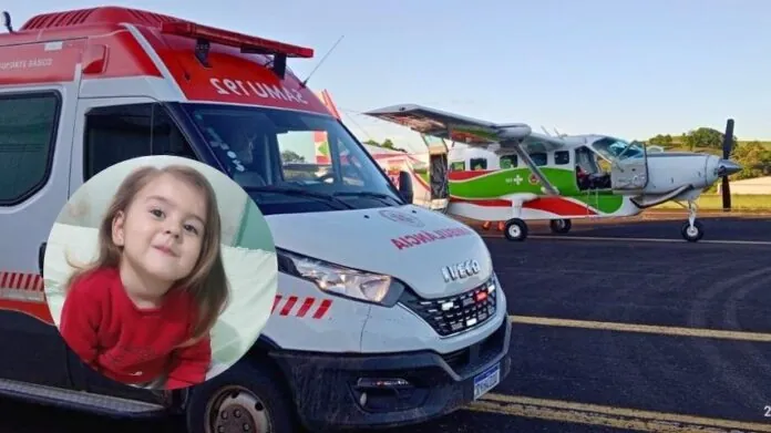 De acordo com as informações repassadas pela equipe do Samu de Concórdia, a menina, identificada como Kimberllyn, apresentava um quadro grave após um acidente doméstico, onde ingeriu soda cáustica pensando ser água. A menina é moradora de Videira, no Meio-Oeste, mas estava internada no Hospital São Francisco em Concórdia devido à gravidade do caso.