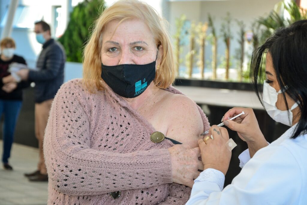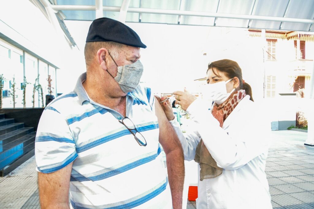 A vacinação acontece na Rua Coberta do Eixo Cultural de Videira, ao lado da Igreja Matriz, das 9h às 16h (sem fechar ao meio dia).