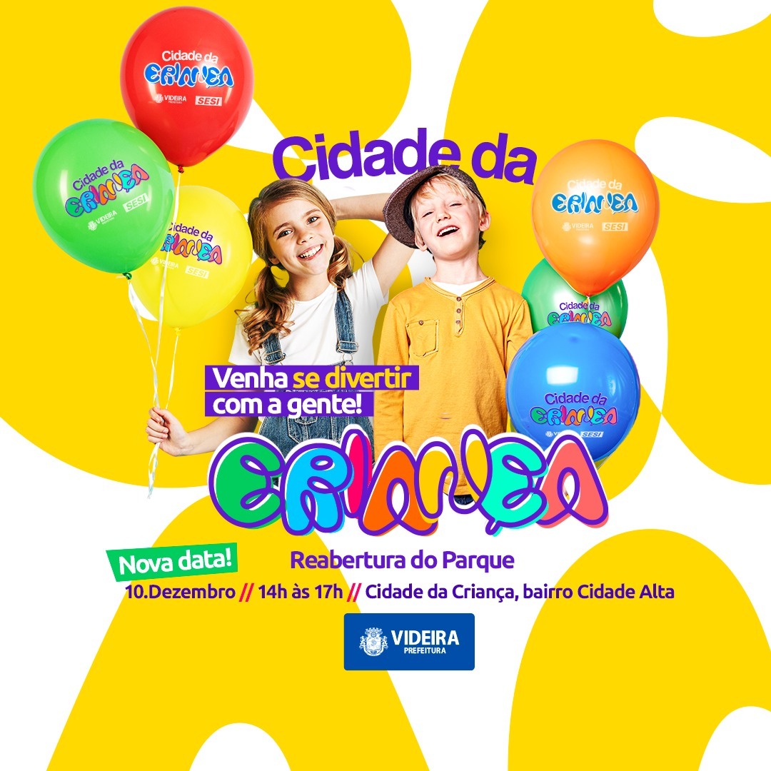 A chuva atrasou essa entrega, mas agora está confirmada! A Reabertura da Cidade da Criança será no dia 10 de dezembro, com uma tarde de diversão.