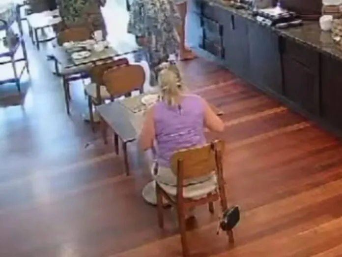 No vídeo, a ex-prefeita aparece chegando na mesa do café da manhã por volta das 9h30, acompanhada de um homem. A vítima estava sentada à mesma mesa mais cedo, mas, ao sair, esqueceu a bolsa pendurada na cadeira.