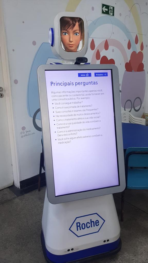 Entre as ações previstas, está a participação de um robô que responde perguntas e tira dúvidas sobre a hemofilia. O robô Roche tem como objetivo popularizar informações sobre a doença, qualidade de vida dos portadores e importância de seguir as recomendações médicas. O fato de ele interagir, conversando com o usuário, permite que os conteúdos sejam fixados de uma maneira divertida. Ele estará nesta segunda-feira, 17, interagindo com os pacientes no Hemocentro Coordenador, em Florianópolis.