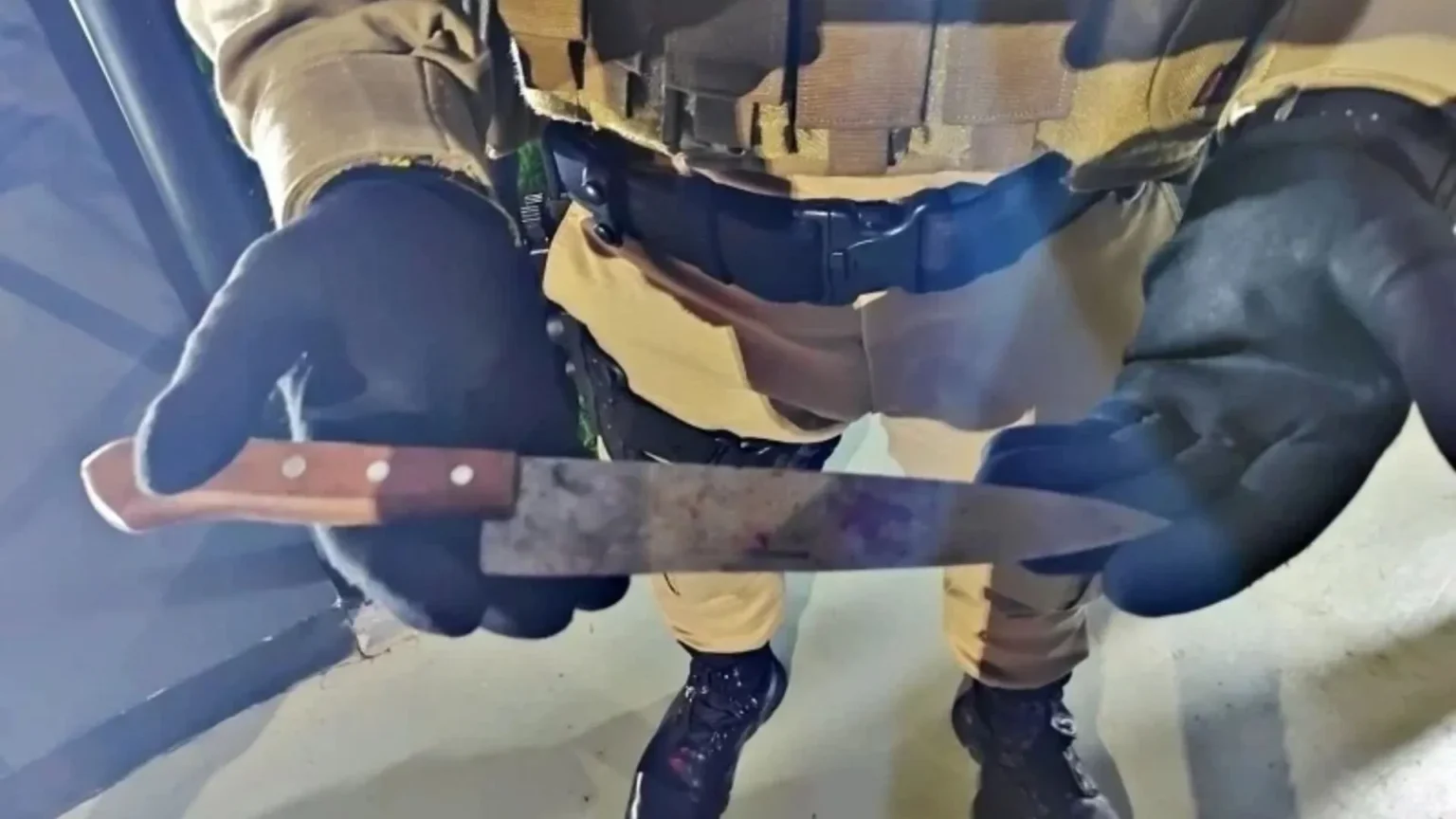 A Polícia Militar fazia rondas próximas à casa da vítima quando foi acionada pela Central de Emergência. Os policiais ouviram gritos de socorro, arrombaram a porta e encontraram o agressor armado com uma faca.