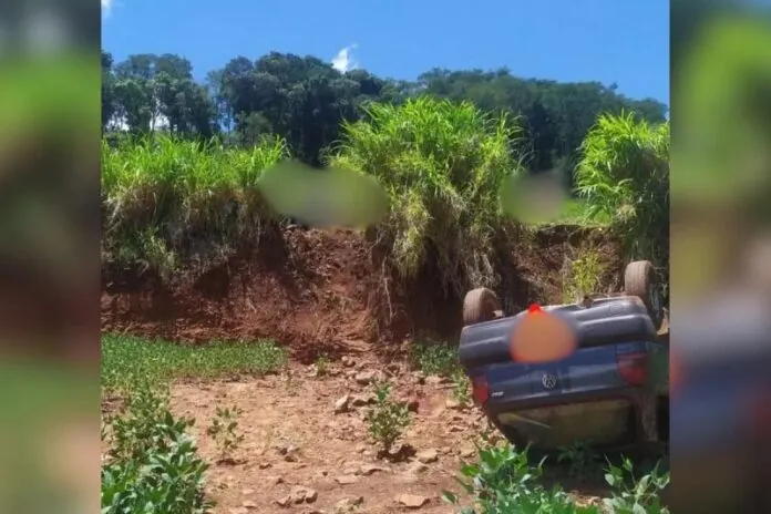Segundo o Corpo de Bombeiros Militar, o VW Gol saiu da pista e capotou em um barranco de aproximadamente três metros de altura.