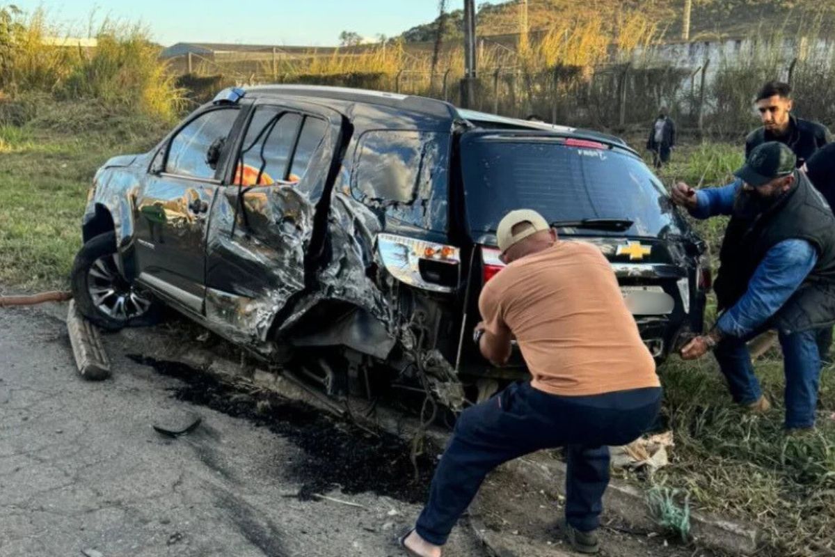 Imagens mostram carro de Fabiano destruído após acidente e cantor desabafa: ‘Livramento’