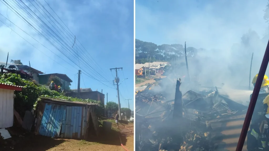 Um incêndio de grandes proporções atingiu uma residência unifamiliar na tarde deste domingo (19), em Fraiburgo, no Meio-Oeste de Santa Catarina. O Corpo de Bombeiros Militar foi acionado às 12h01min, via COBOM, para atender a ocorrência no bairro Nossa Senhora Aparecida, Quadra 593.