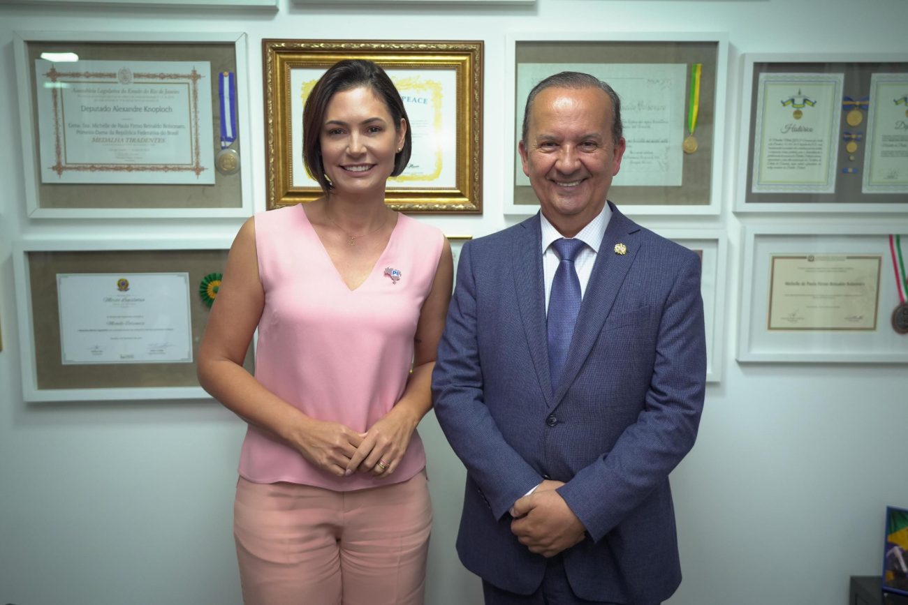 Jorginho Mello e Michele Bolsonaro se reúnem em Brasília para tratar do futuro político – Foto: Divulgação/ND