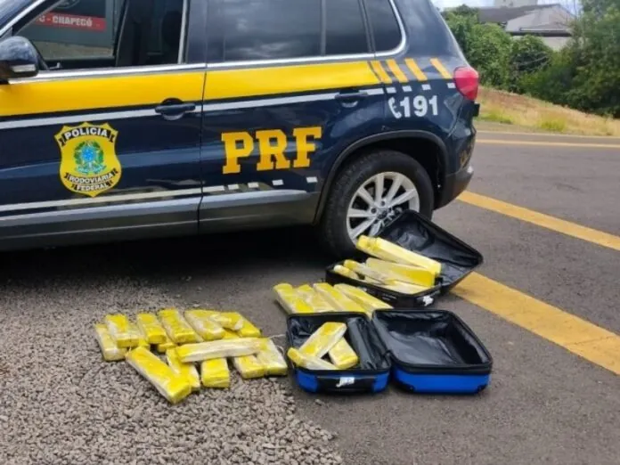 Uma jovem foi presa pela Polícia Rodoviária Federal (PRF) por tráfico de drogas na tarde desta terça-feira (14). Ela foi flagrada transportando 34,6 kg de maconha em sua bagagem durante uma fiscalização de rotina em um ônibus interestadual, no terminal rodoviário de Chapecó, Santa Catarina.