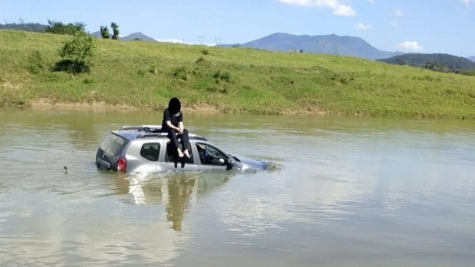 Após o resgate, os bombeiros confirmaram que o carro ficou preso em uma área de areia, o que impediu que submergisse completamente.