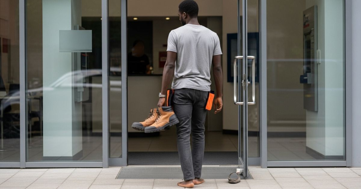 Servente de pedreiro foi obrigado a retirar os calçados para entrar numa agência da Caixa em TorresFoto: Imagem gerada por IA/ND Mais