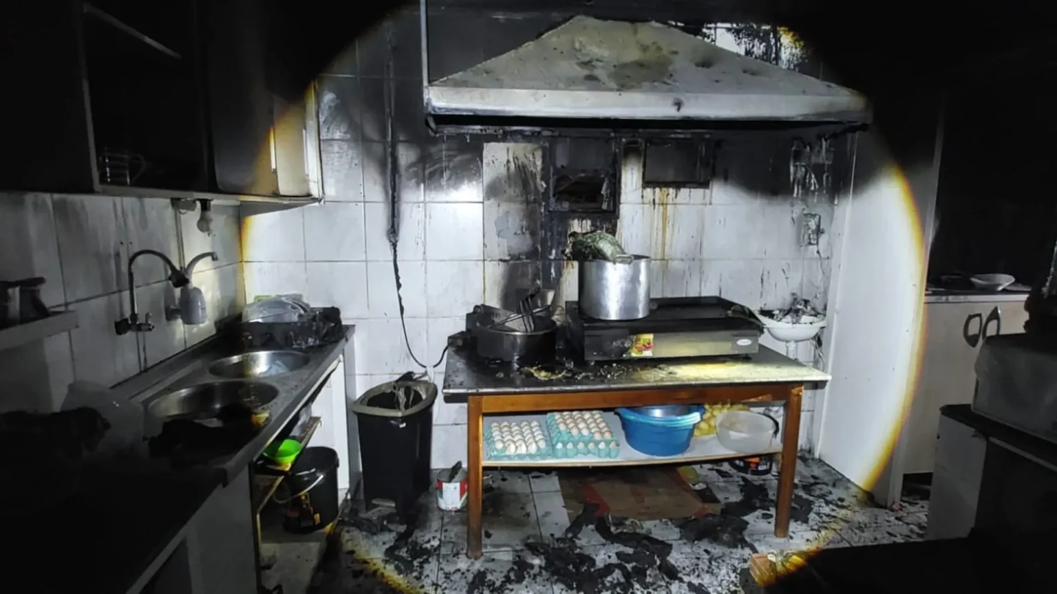 No interior da cozinha, os bombeiros encontraram uma fritadeira elétrica em chamas.