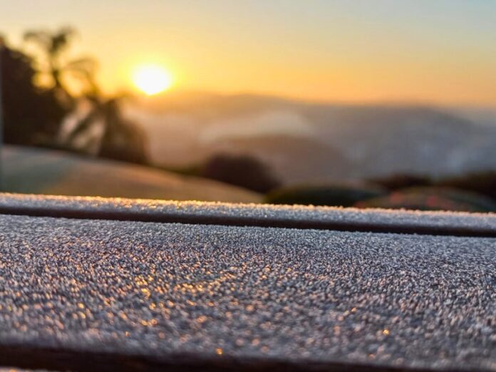 A massa de ar polar sobre o Estado intensificou o frio, com mínimas variando entre 0 e -5°C na região.