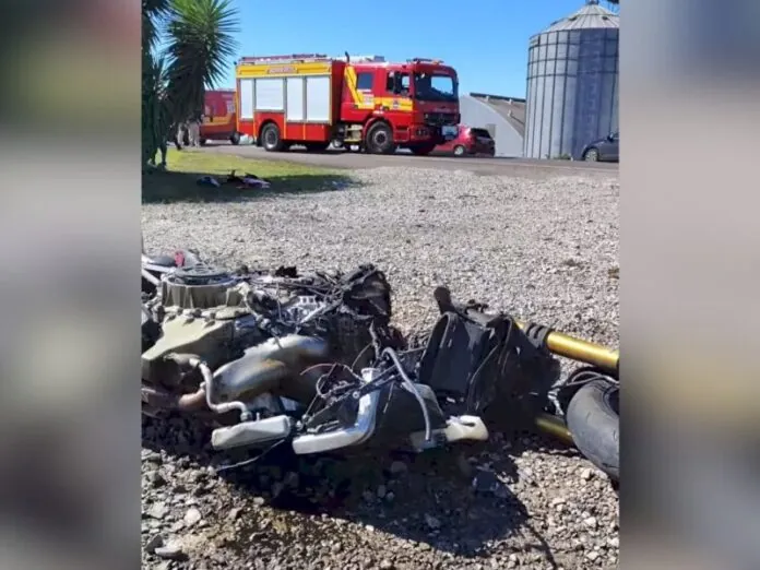 A moto, uma Ducati Panigale, tinha placas do Rio Grande do Sul pegou fogo após o choque com o caminhão Iveco, com placas de São Paulo.