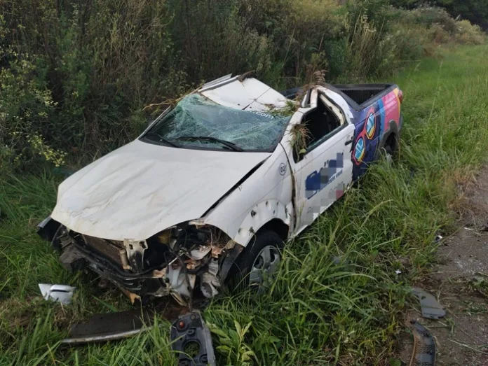 Motorista fica ferido após capotamento na BR-470 em Curitibanos no final da tarde deste domingo (17), após a colisão de duas Fiat Strada.